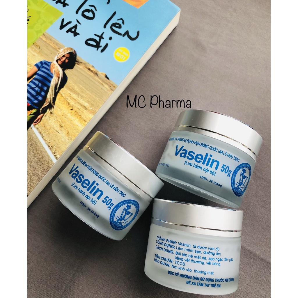 Kem Dưỡng Ẩm Vaselin Viện Bỏng Quốc Gia Hộp 50g, Sáp Chống Nẻ Làm Mềm Da An Toàn Cho Trẻ Nhỏ ĐẶC ĐIỂM NỔI BẬT: – Với thành phần 100% Vaselin, Kem Nẻ Vaselin Bỏng Quốc Gia giúp chống nứt nẻ môi, da tay chân cực kì hiệu quả – Có thể sử dụng kết hợp với son môi có màu thông thường khác khi trang điểm – Bạn có thể sử dụng bất cứ thời điểm nào khi cảm thấy da dẻ, môi có hiện tượng khô rát – Đặc biệt sản phẩm đã được chứng minh không gây kích ứng, dị ứng da – Phù hợp cho tất cả các loại da, mang lại cho bạn một nàn da khỏe mạnh như làn da em bé – Đừng quên sử dụng vào buổi tối trước khi đi ngủ để có thể cảm nhận làn da mịn màng sức sống vào sáng sớm khi thức dậy. CÔNG DỤNG: – Ngoài công dụng làm mềm dịu ngay các vùng da khô ráp nứt nẻ, kem còn làm mềm vùng da tổn thương đang lên vẩy, trầy xước, các vết bỏng.... – Ngoài ra Kem còn có công dụng làm mềm các vết thương đang lên vẩy ... Các vết trầy xước do ngã,hay va đập,thậm chí cả các các vết bỏng, bỏng bô, bỏng nước sôi ... Chỉ cần đắp 1 lớp kem lên phần da bị thương ( đang lên vẩy hoặc chuẩn bi tróc vẩy) để từ 20-30' lớp vẩy đó sẽ mềm và tự bong ra .. – Đối với các vết bỏng bô xe thì khi vừa bị bỏng lập tức đắp 1 lớp kem lên phần bị thương,để 5-10' ... Sẽ làm giảm khả năng gây sẹo hay phồng rộp ngay lập tức,sẽ làm mát và dịu da rất nhanh,không gây bỏng rát ... – Đảm bảo hàng của viện Bỏng 100%. – Dùng cho mọi đối tượng, đặc biệt có thể sử dụng được cho trẻ nhỏ sơ sinh. THÔNG TIN CHI TIẾT: – Đơn vị sản xuất: VIỆN BỎNG QUỐC GIA – LÊ HỮU TRÁC – Quy cách: Hộp 50g – Màu kem: trắng – HSD: 3 năm kể từ ngày sản xuất