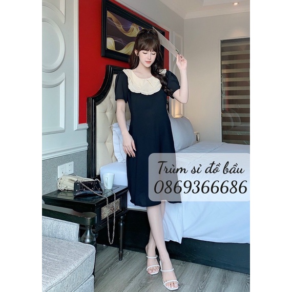 Giới thiệu [Hàng loại 1]Đầm Bầu Váy Bầu cao cấp dáng Xuông Chất Lụa Hàn Mềm, siêu mát Thấm Mồ Hôi Tốt, Freesize từ 45 đến 70Kg VB03