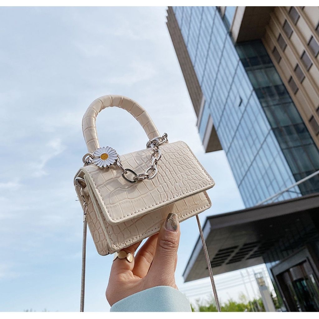 Giới thiệu (Hàng Loại 1) Túi Mini hoa cúc Hottrend KR 265- Vân da cá sấu cao cấp, đính hoa cúc siêu xinh- KARA 265