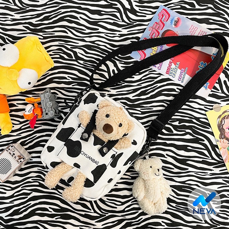 Giới thiệu [HÀNG MỚI] Túi Vải Đeo Chéo Nữ Hình Gấu Cá Tính Vui Nhộn NEVA928 (Không Kèm Móc Gấu Trắng)