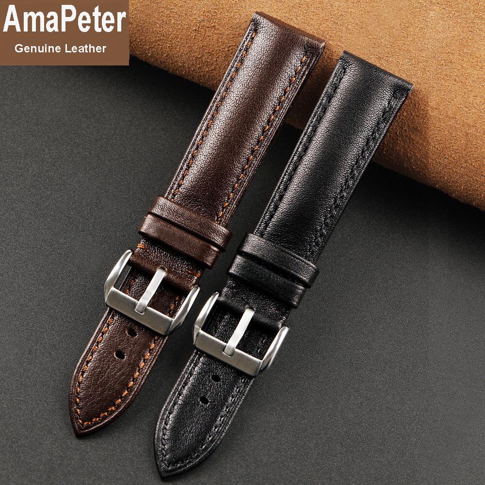 Giới thiệu [HÀNG NHẬP] Dây Da Đồng Hồ Da Bò Italy AmaPeter Mềm mại chống thấm nước BO-36 nhiều size 12 14 16 18 20 22 24mm - Nâu Đậm