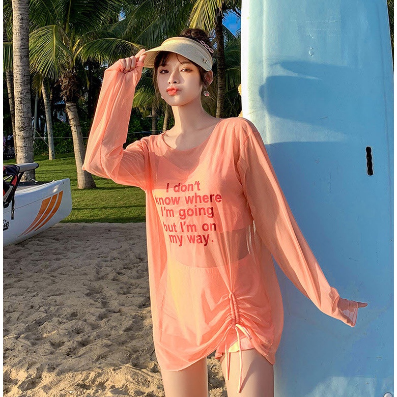 Giới thiệu (Hàng Nhập) Đồ bơi 3 mảnh, Set bikini gồm khoác ngoài, màu quỳnh quang Neon #028288