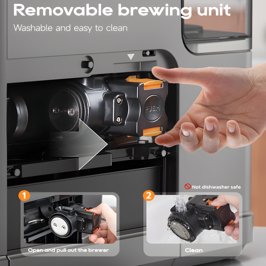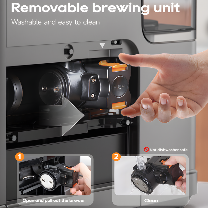 - Một trong những tính năng nổi bật của HiBREW H16 là hoạt động tự động. Chỉ với một nút chạm, người dùng có thể thưởng thức một ly cà phê espresso, cappuccino hoặc latte mới pha mà không cần có kỹ năng barista hoặc đào tạo chuyên sâu. Giao diện thân thiện với người dùng này giúp mọi người trong văn phòng có thể truy cập được, đảm bảo trải nghiệm cà phê nhất quán và thú vị.