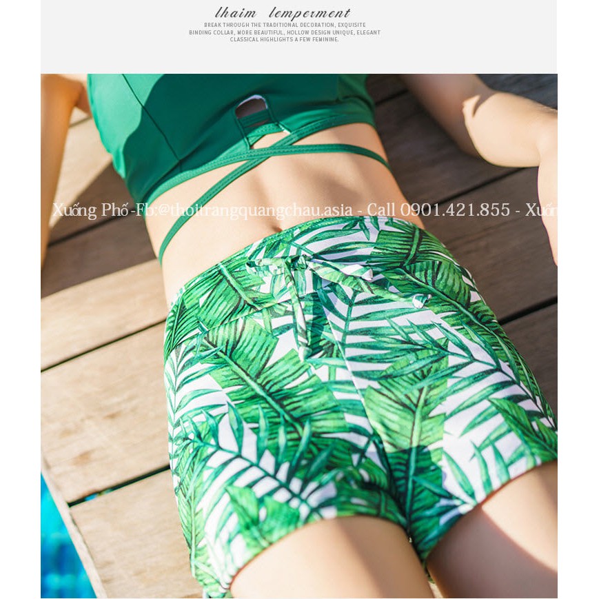 (Hàng nhập) Set Bikini 3 món gồm áo + quần + váy choàng #76133 Màu Xanh