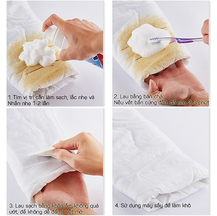 Tẩy các vết bẩn, vết ố vàng, đồ ăn, vết máu, mực, nước trái cây, nước cà phê, rượt vang, dầu mỡ, loại bỏ các vi khuẩn gây mùi khó chị