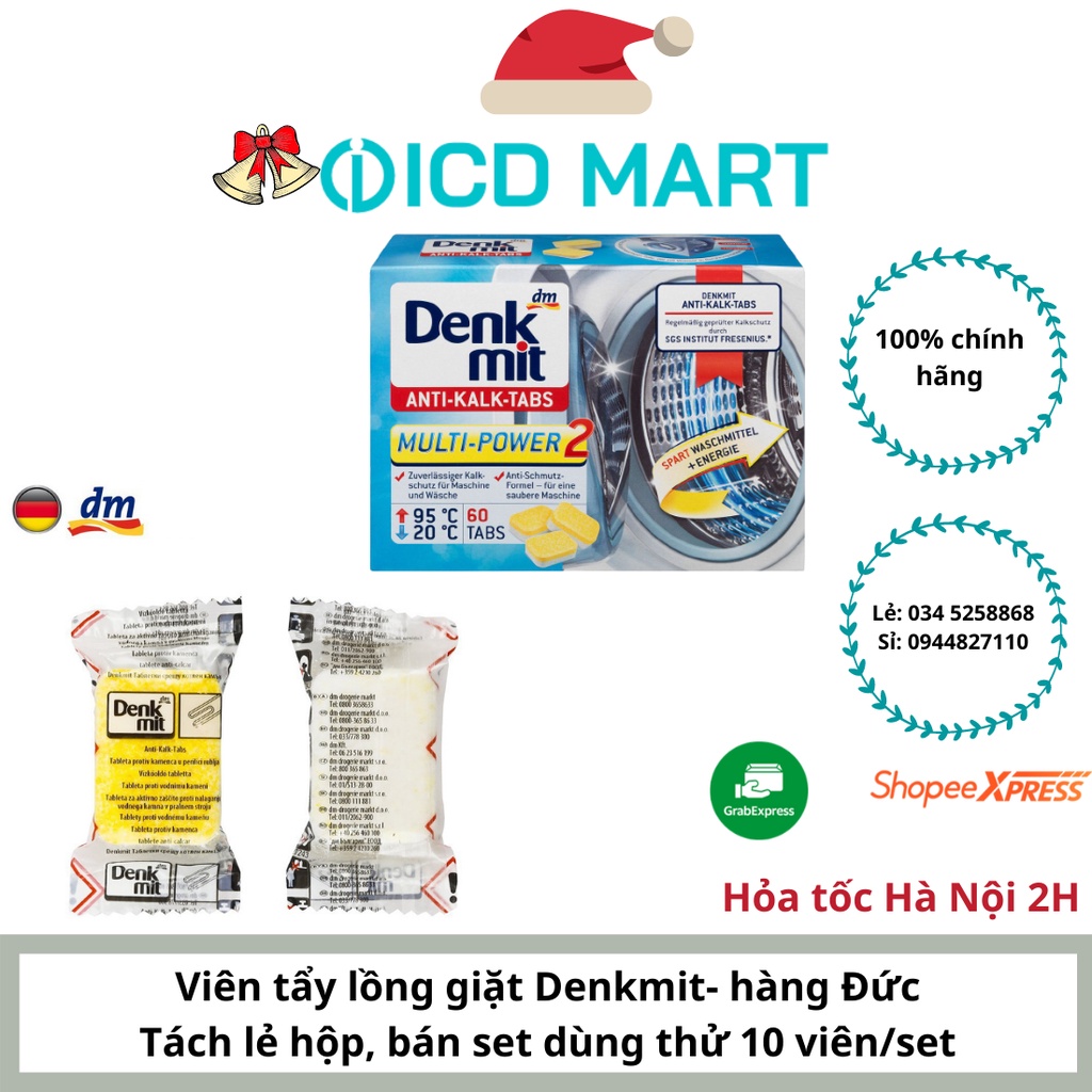 [Hàng NK Đức ] 10 VIÊN Vệ sinh lồng giặt làm sạch lồng giặt tẩy lồng giặt DENKMIT - cho máy cửa trước và cửa trên