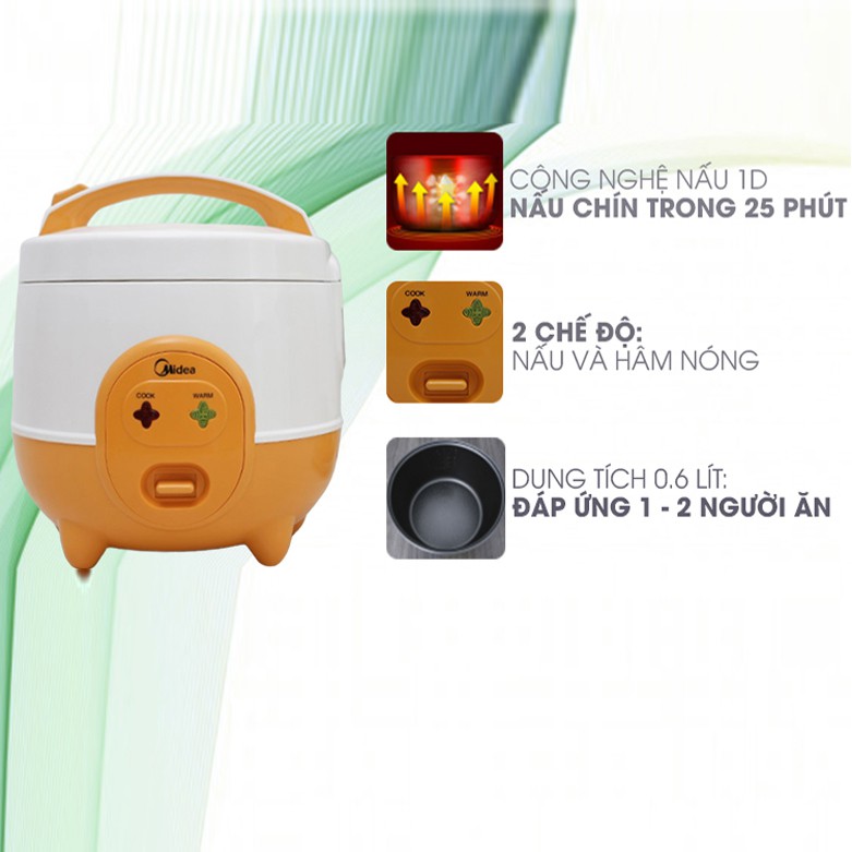 Thiết Bị Điện Gia Dụng > Đồ gia dụng nhà bếp > Nồi cơm điện || [Chính hãng] Nồi cơm điện mini Midea 0.6 lít MR-CM06SD, hàng chính hãng , bảo hành 12 tháng toàn quốc , lỗi 1 đổi 1