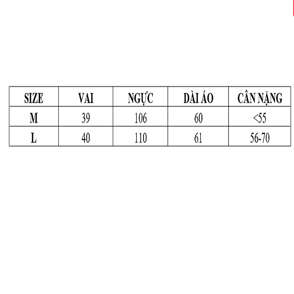 Kích thước: M<55KG L(56-70)KG