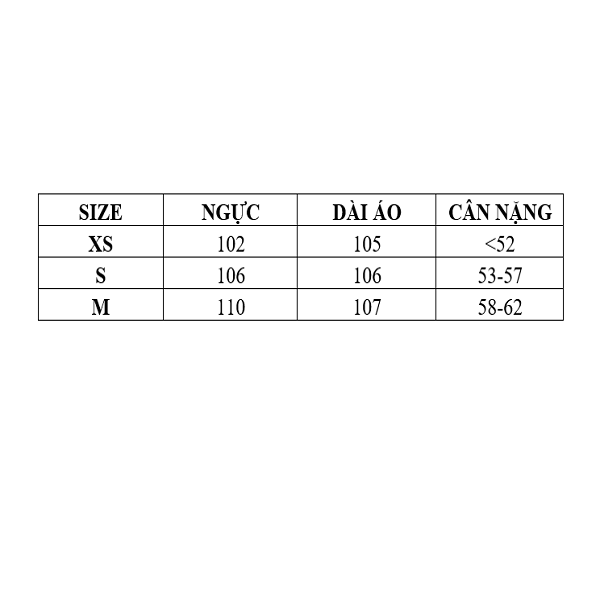 Kích thước: XS(<52)KG S(53-57)KG M(58-62)KG