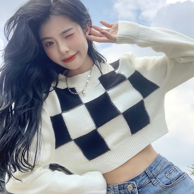Giới thiệu [HÀNG SẴN]ÁO LEN crotptop kẻ bàn cờ siêu xinh