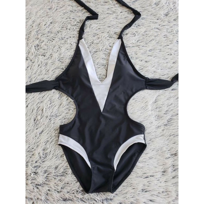 Giới thiệu [Hàng Sẵn ] bikini đồ bơi cổ V phối trắng khoét eo