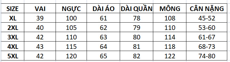Kích thước: XL(45-52)KG 2XL(53-60)KG 3XL(61-67)KG 4XL(68-73)KG 5XL(74-80)KG
