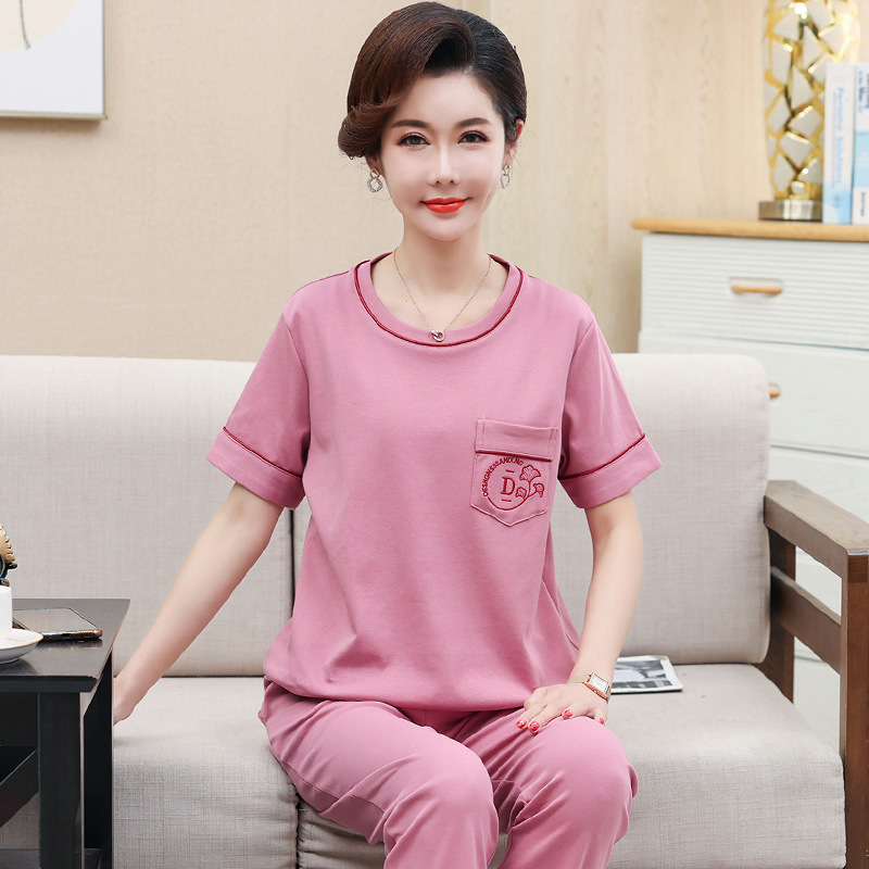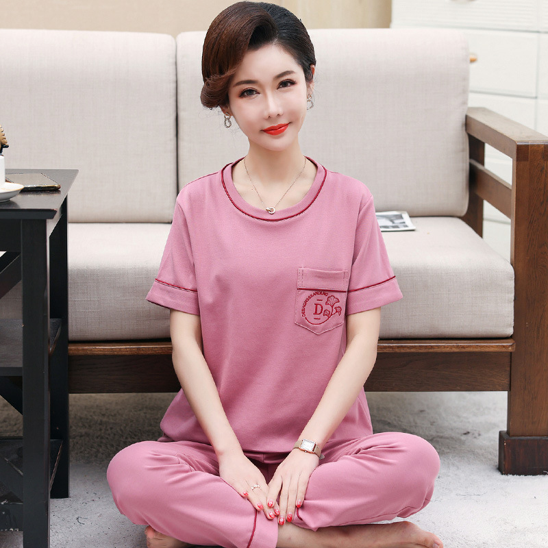 (HÀNG SẴN) Bộ Đồ Ngủ Ngắn Tay Bằng Cotton Cho Mẹ AB03 - Hàng Quảng Châu Cao Cấp