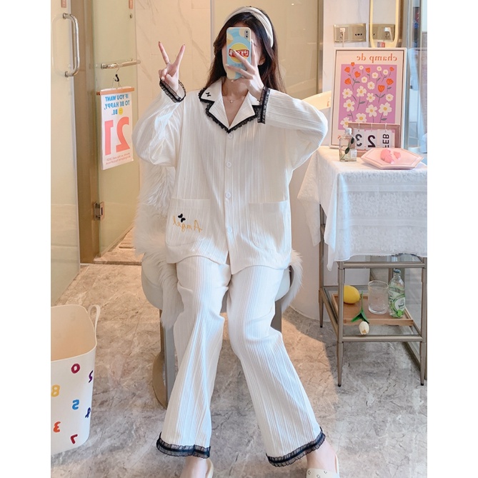 Bộ Ngủ Pyjama Cotton Bông Dễ Thương Dài Tay Thu Đông 2021