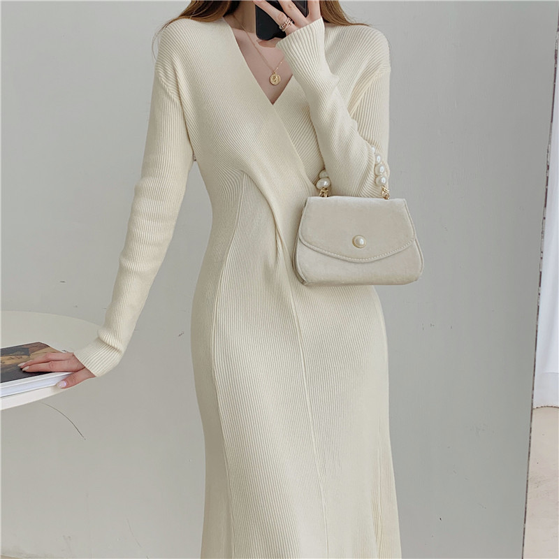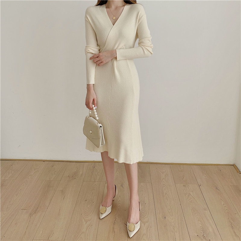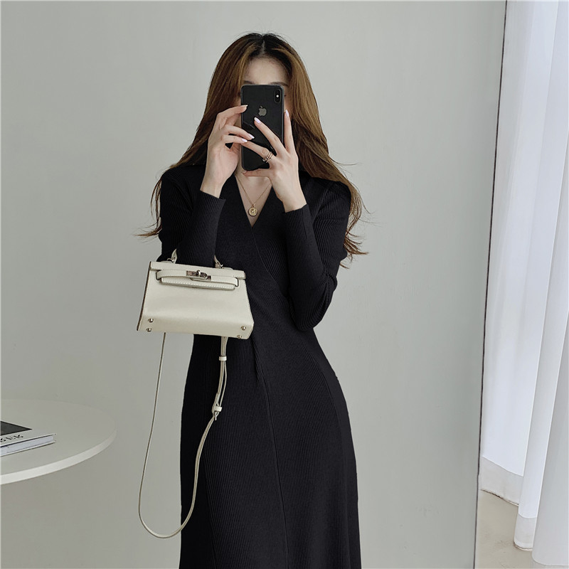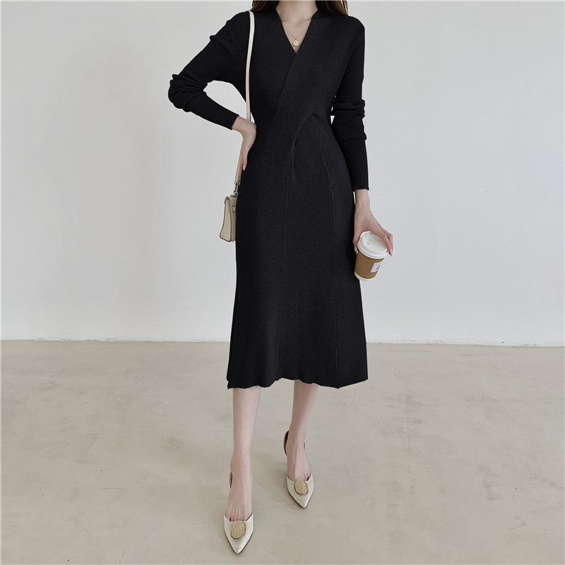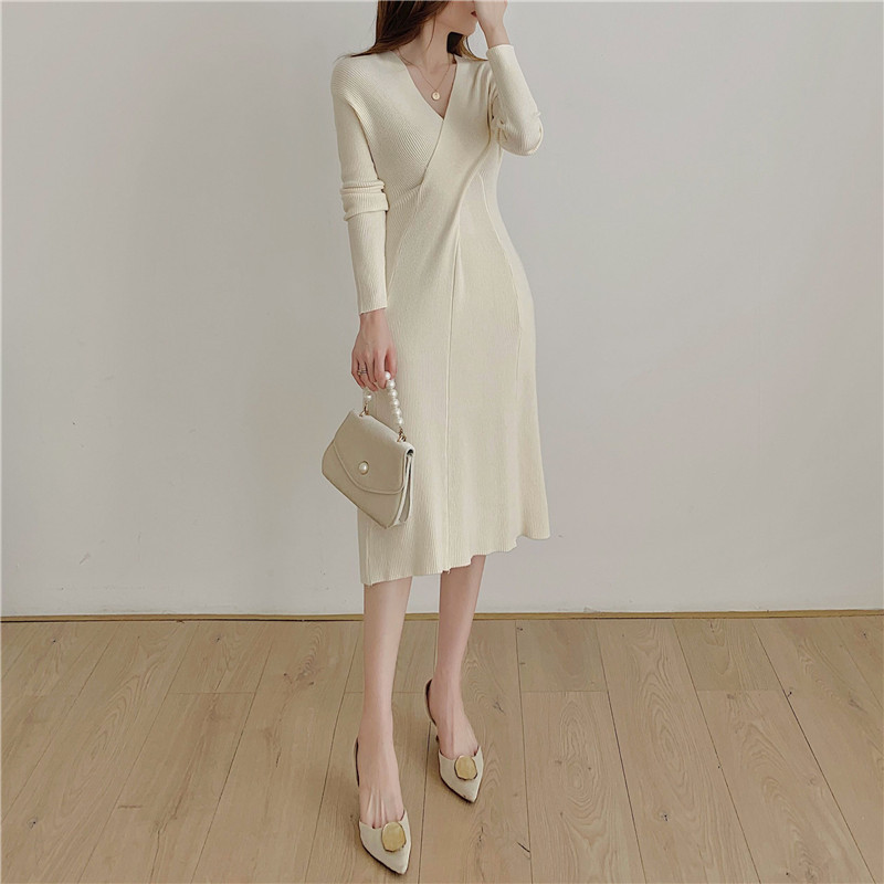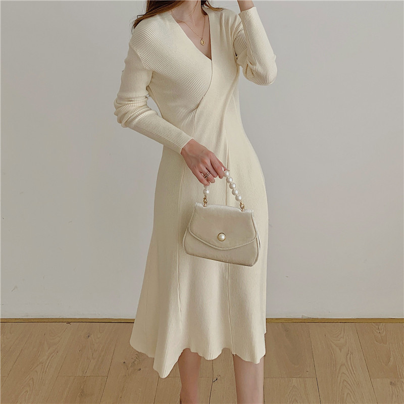 (HÀNG SẴN) Đầm Len Cổ V Ôm Eo Thanh Lịch Khí Chất AL75 - Hàng Quảng Châu Cao Cấp