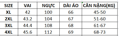 Kích thước: M(52-56)KG L(56-60)KG XL(61-65)KG