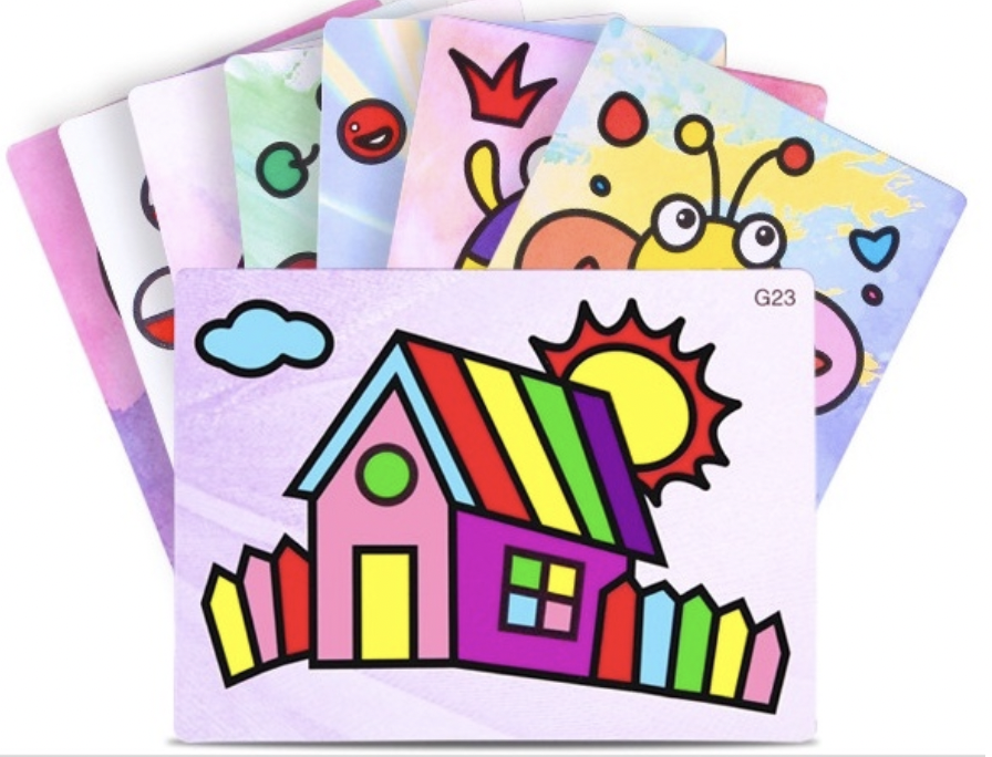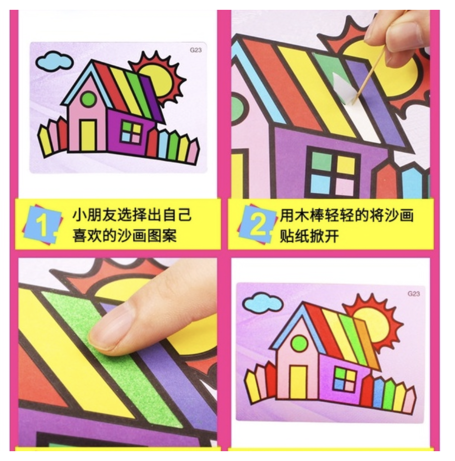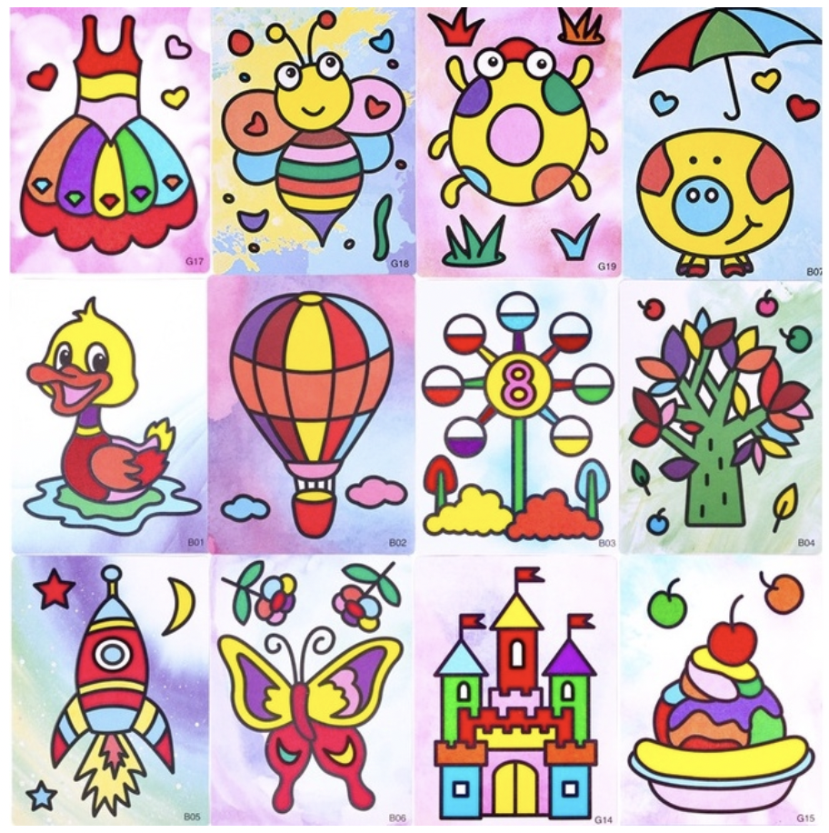 (Hàng Sẳn) Tranh cát 12 màu +12 tranh Tô màu cho bé Tranh Cát DIY 21x14cm An Toàn Cho Bé Kèm 12 Lọ Màu Cát Giá VDO