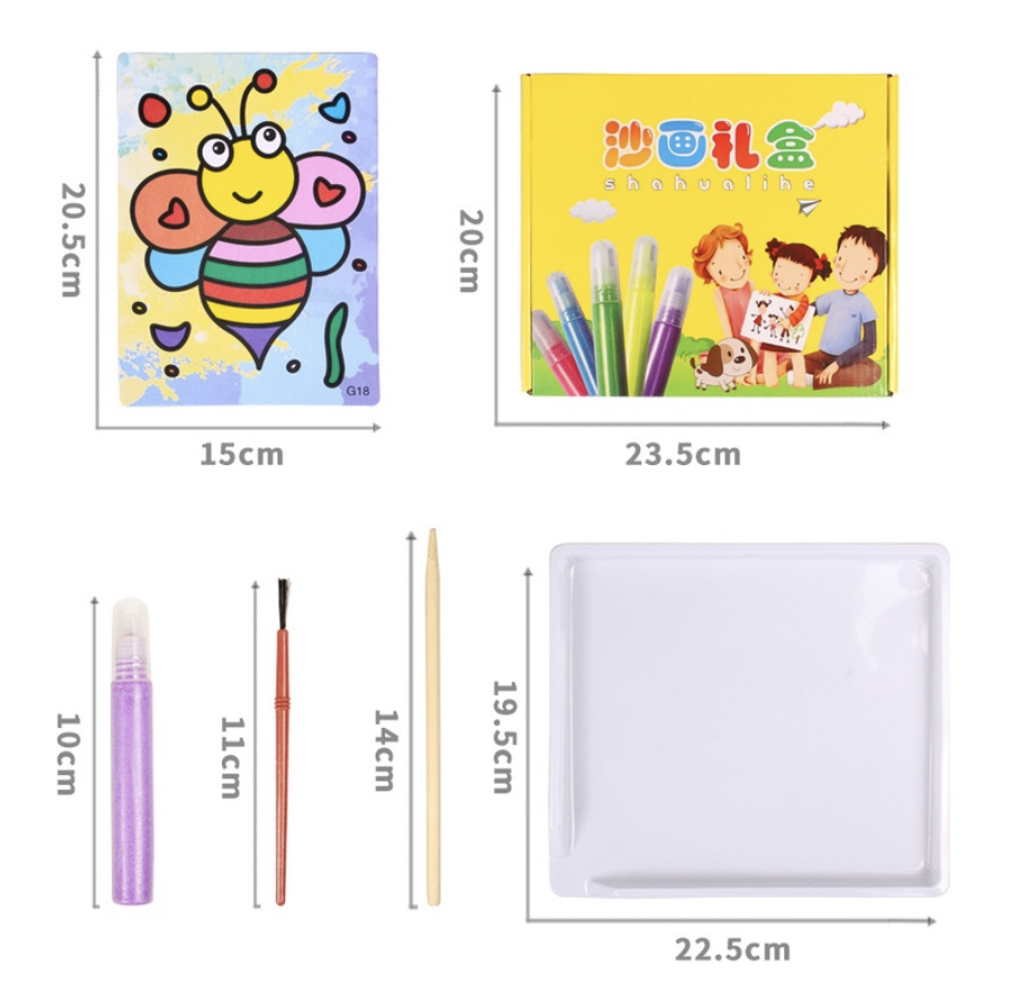 1 khay hứng cát trong lúc bé vẽ để không bị rớt ra ngoài