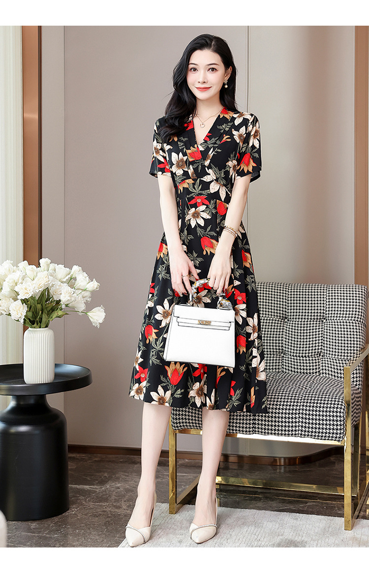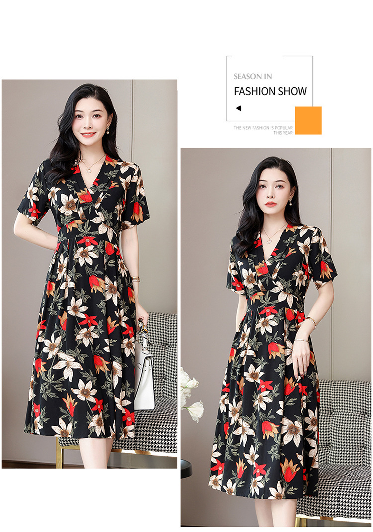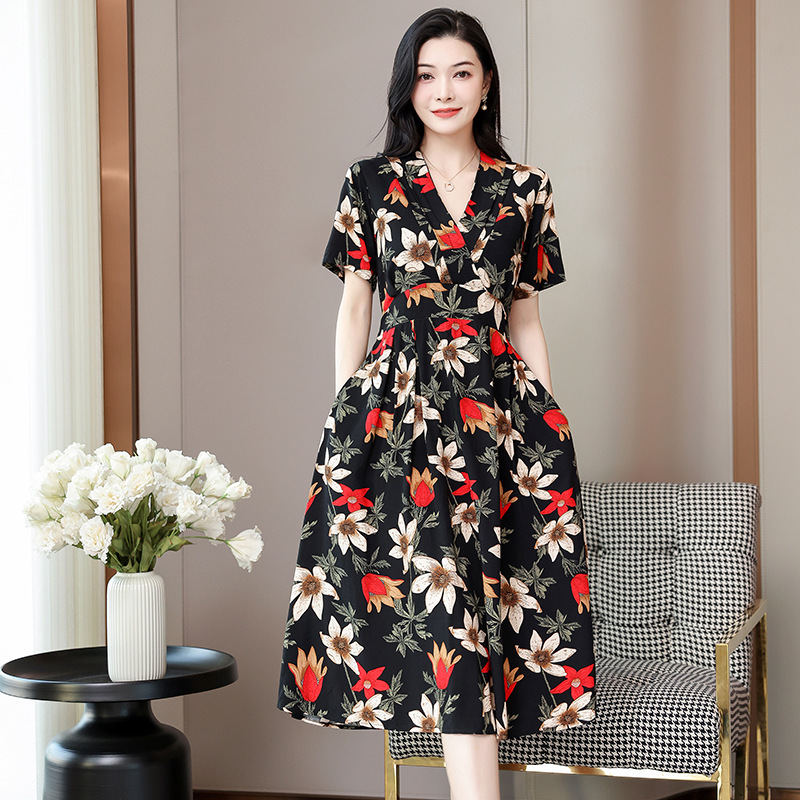 (HÀNG SẴN) Váy Cotton Lụa Cổ V In Hoa Thanh Lịch VH06 - Hàng Quảng Châu Cao Cấp