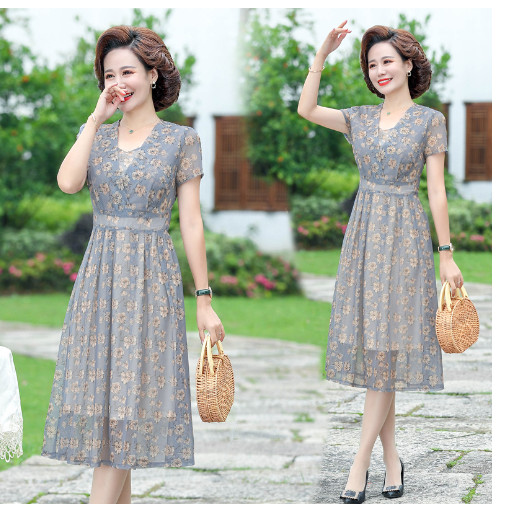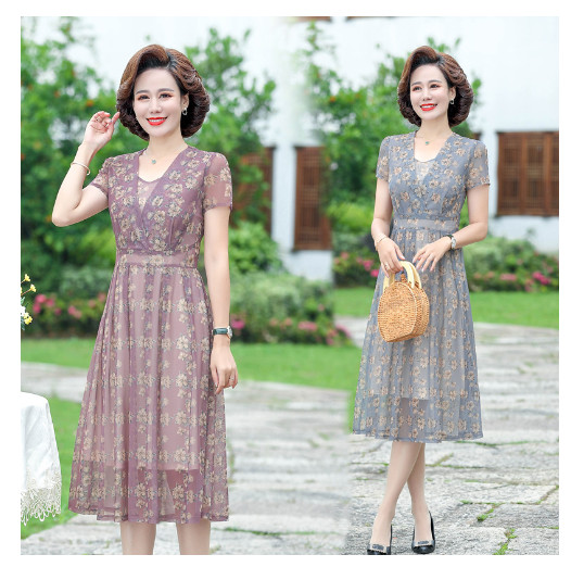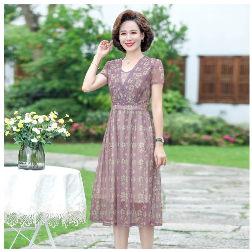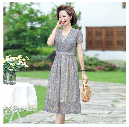 (HÀNG SẴN) Váy Đầm Hoa Giản Dị Cho Mẹ VH12 - Hàng Quảng Châu Cao Cấp