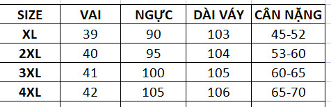 Kích thước: XL(45-52)KG 2XL(53-60)KG 3XL(60-65)KG 4XL(65-70)KG