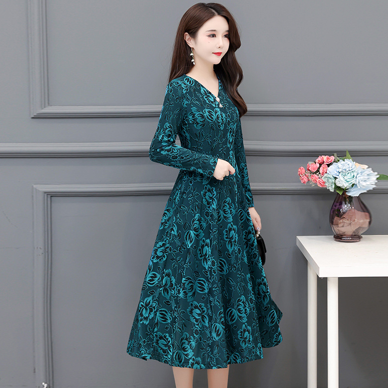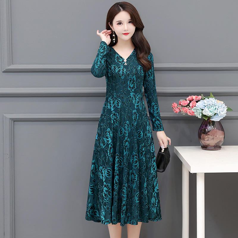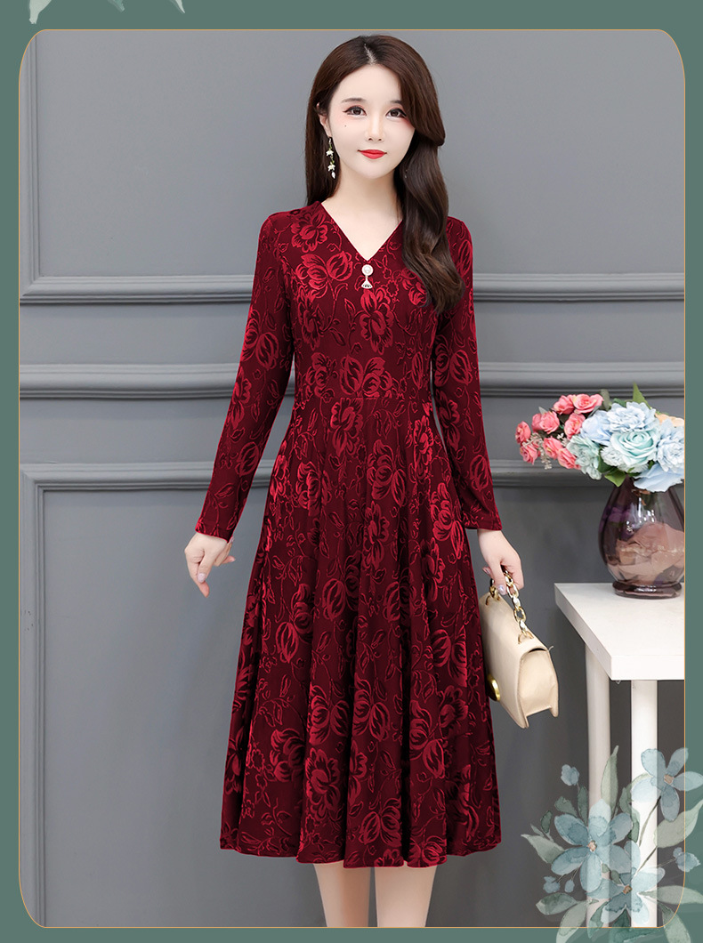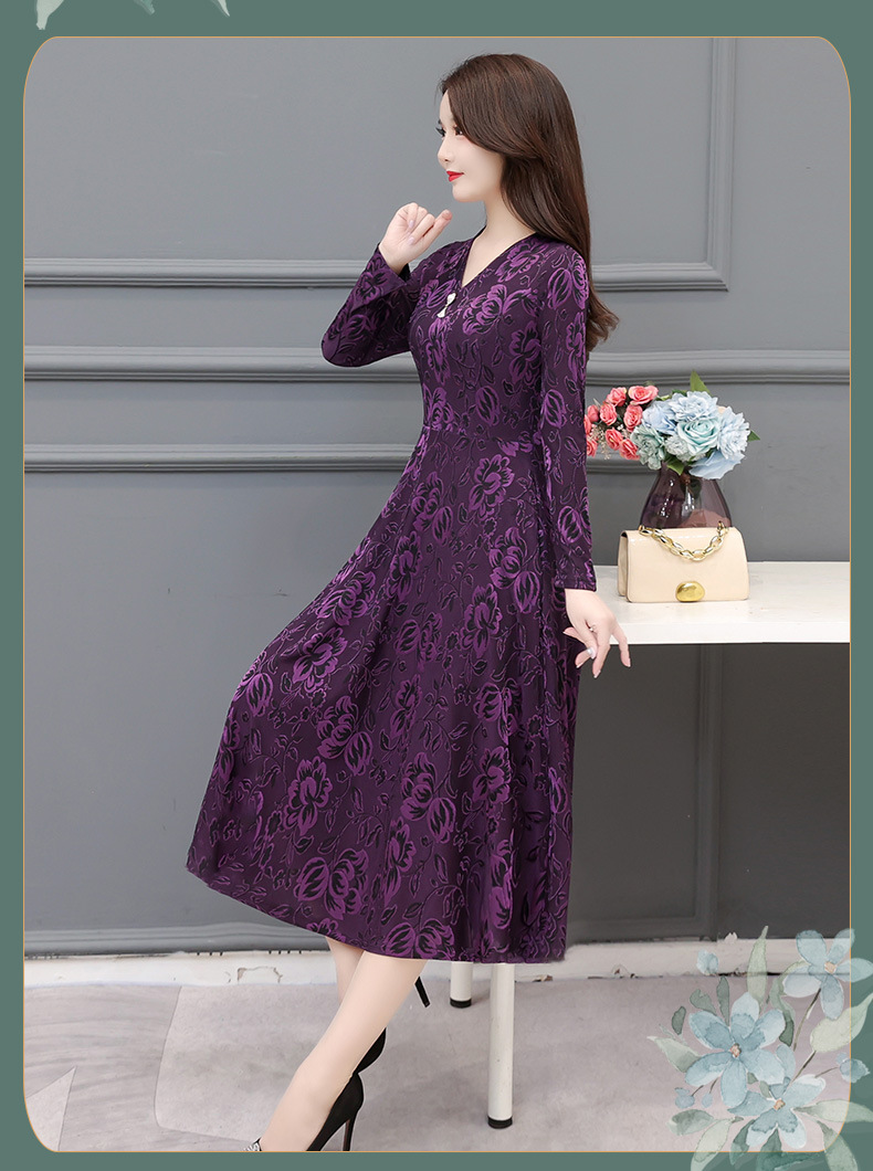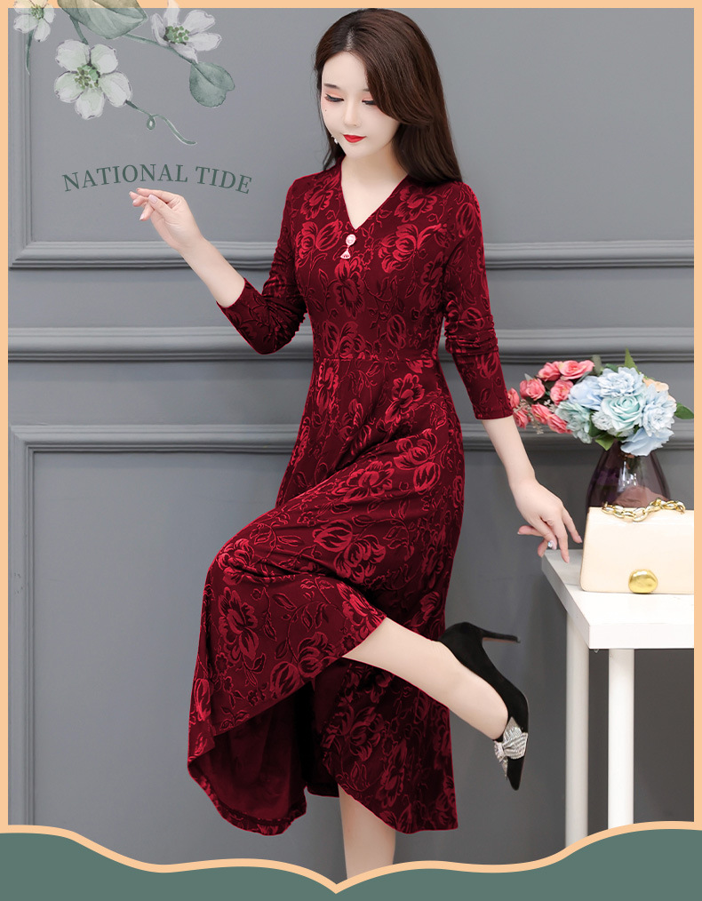 (HÀNG SẴN) Váy Hoa Dài Che Bụng Cổ V Thanh Lịch Cho Mẹ VH17 - Hàng Quảng Châu Cao Cấp