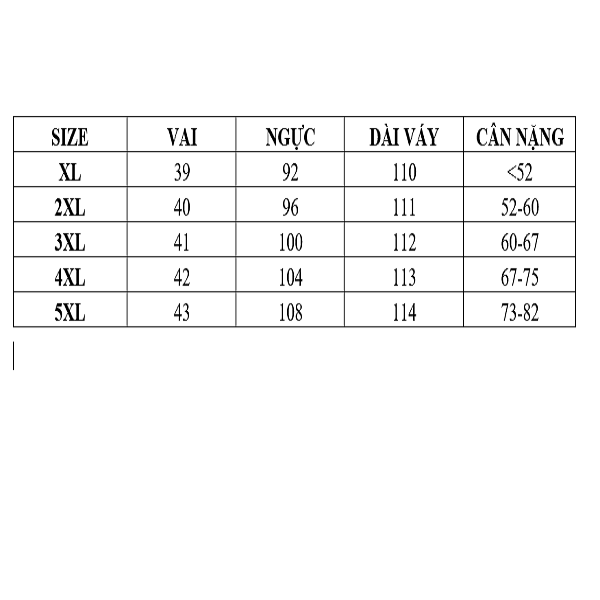 Kích thước: XL(<52)KG 2XL(53-60)KG 3XL(61-67)KG 4XL(68-75)KG 5XL(76-82)KG