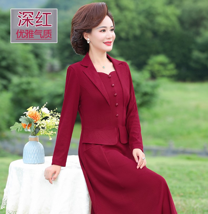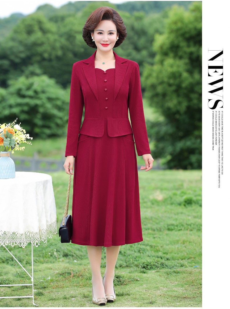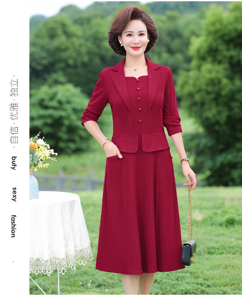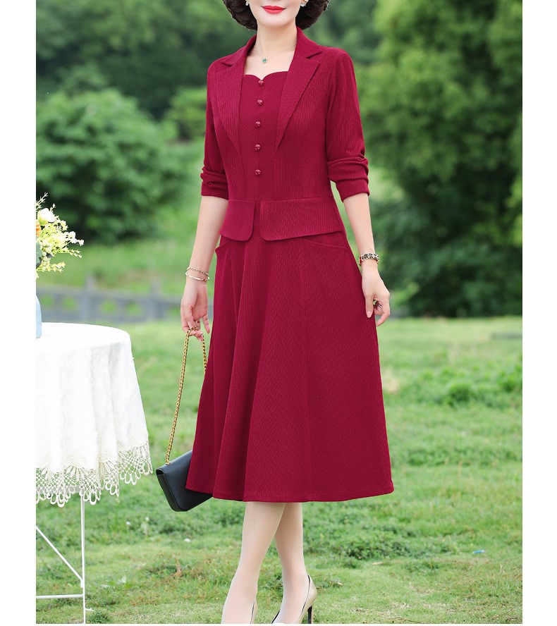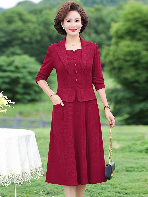 (HÀNG SẴN) Váy Dài Tay Cổ Vest Nữ Tính Của Mẹ VH14 - Hàng Quảng Châu Cao Cấp