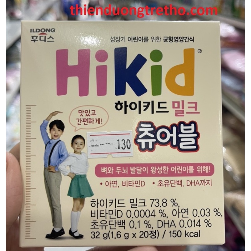 Sữa Hikid Cô Đặc Dạng Viên Nhai- Hộp 20 Viên (1-12 Tuổi) Sản phẩm này không phải là thuốc và không có tác dụng thay thế thuốc chữa bệnh!!