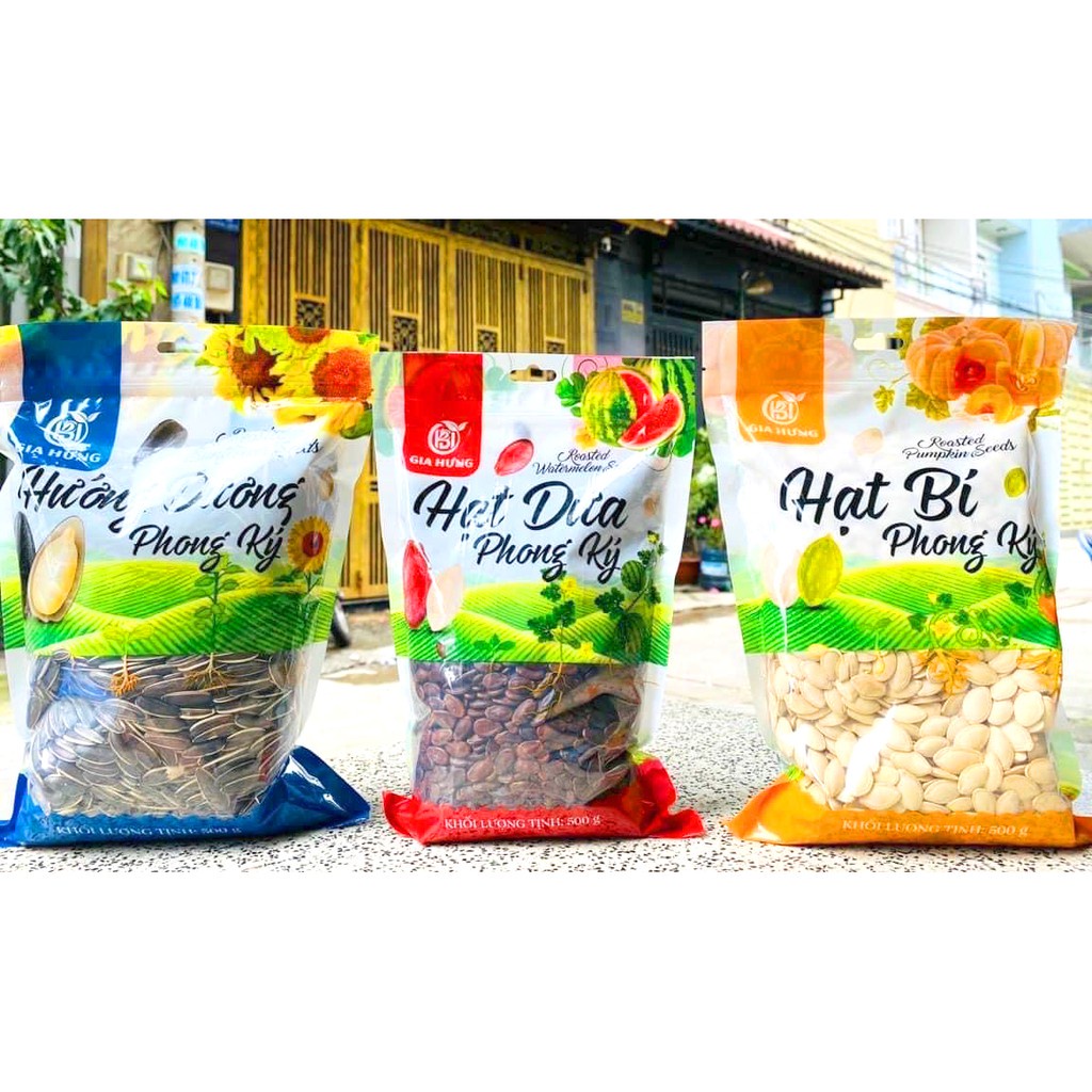 Hàng Tết - Một gói hạt dưa/ hạt hướng dương/ hạt bí Phong Ký Gia Hưng hàng cty VN gói lớn 500gam túi zip vệ sinh an toàn