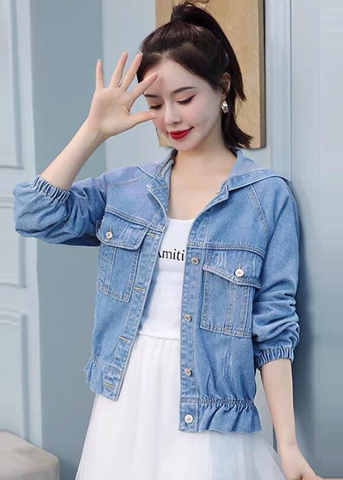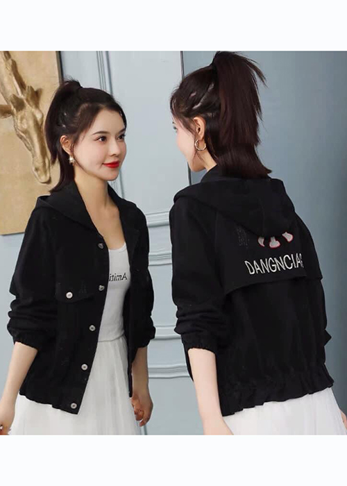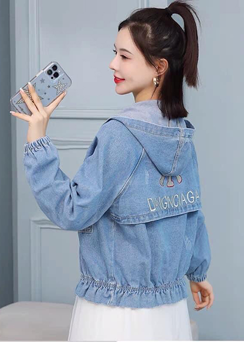 Áo Khoác Jean Nữ Thêu Chữ Nón TrùmThời Trang