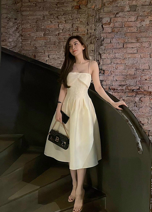 + Kiểu Dáng: Thiết Kế 2 Dây Xinh Xắn, Kết Hợp Cổ Phối Ren, Có Kèm (Mút Xốp Ngực), Form Dáng Xòe Xinh Xắn Phù Hợp Đi Công Việc, Dạo Phố, Hẹn Hò, Sự Kiện…