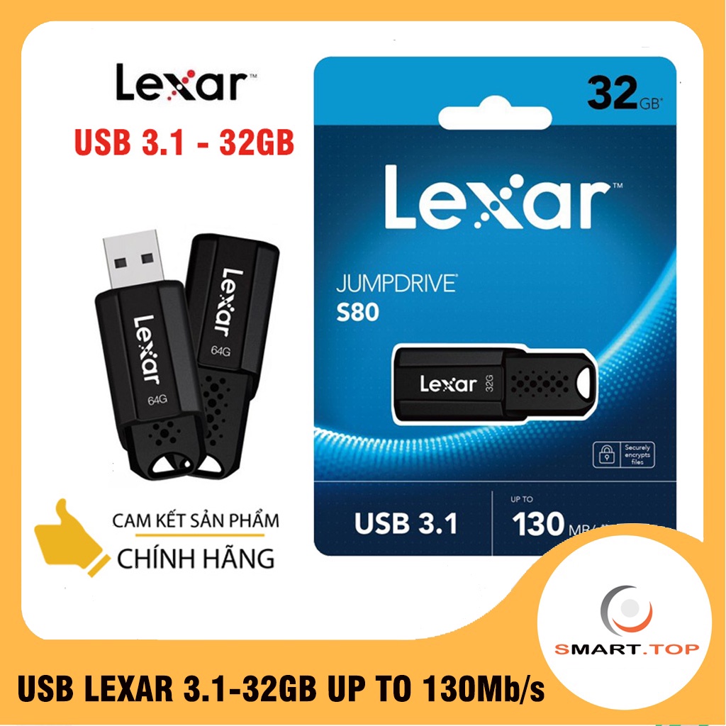 Máy tính & Laptop > Thiết Bị Lưu Trữ > USB & OTG || [Chính Hãng] USB Lexar JumpDrive 32GB S80 USB 3.1, tốc độ đọc lên tới 130Mb/s, Ghi 25Mb/s - Tin Học Mai Hoàng Phân PhốI