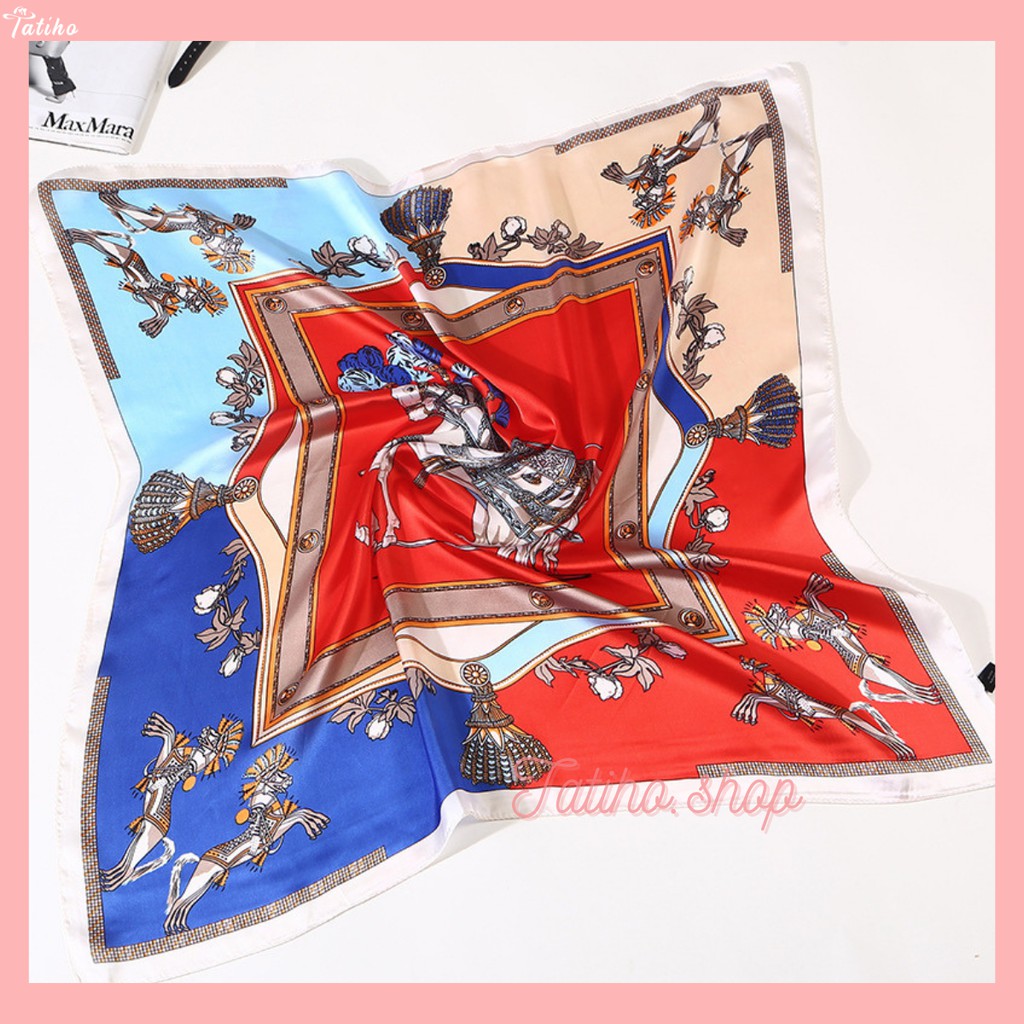 Giới thiệu [Hàng Xịn, Giá Tốt] Khăn Turban Lụa Vuông Cao Cấp Xe Ngựa Sang Trọng - Chất Liệu Chiffon - 70x70cm - Mã KL017
