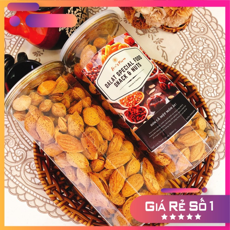 Hạnh nhân rang bơ Eric's Farm 450g, vỏ mỏng, thơm giòn, ăn vặt dinh dưỡng giá rẻ ---------------------------------- 🌟 Hạnh nhân rang bơ có vị mặn mặn, béo bùi, giòn tan, hương vị vừa miệng, thơm nức hấp dẫn. 🌟 Hạnh nhân rang là món ăn vặt dinh dưỡng, thích hợp tiêu dùng hoặc làm quà tặng. 👉 Thích hợp cho cho mẹ bầu hoặc người lớn tuổi ăn vặt ----- - Xuất xứ: Việt Nam - Đóng gói: Hủ PET 450 Gram (CÂN ĐỦ TRỌNG LƯỢNG - ẢNH THẬT 100%) - HDSD: Dùng trực tiếp khi mở hộp. Tránh ánh nắng trực tiếp, bảo quản nơi thoáng mát ------ ✅ LƯU Ý: Khi bạn gặp VẤN ĐỀ về sản phẩm, xin đừng vội ĐÁNH GIÁ Shop, hãy liện hệ với chúng tôi để được hỗ trợ một cách tốt nhất. ✅ Chúc các bạn có những trải nghiệm tuyệt vời cùng sản phẩm Hạnh nhân rang bơ Eric's Farm 450g ====================== 🏫 Eric's Farm là thương hiệu đặc sản Đà Lạt uy tín, cung cấp các nông sản thực phẩm và quà tặng chất lượng cao, an toàn, đẹp mắt với giá cả phải chăng và dịch vụ hài lòng. ----------- 🏫 ERIC'S FARM - SỈ & LẺ ĐẶC SẢN ĐÀ LẠT - Hotline: 0919943918 - 0916833740 - Địa chỉ: 127A Thạnh Lộc 28, Phường Thạnh Lộc, Quận 12, TP.HCM