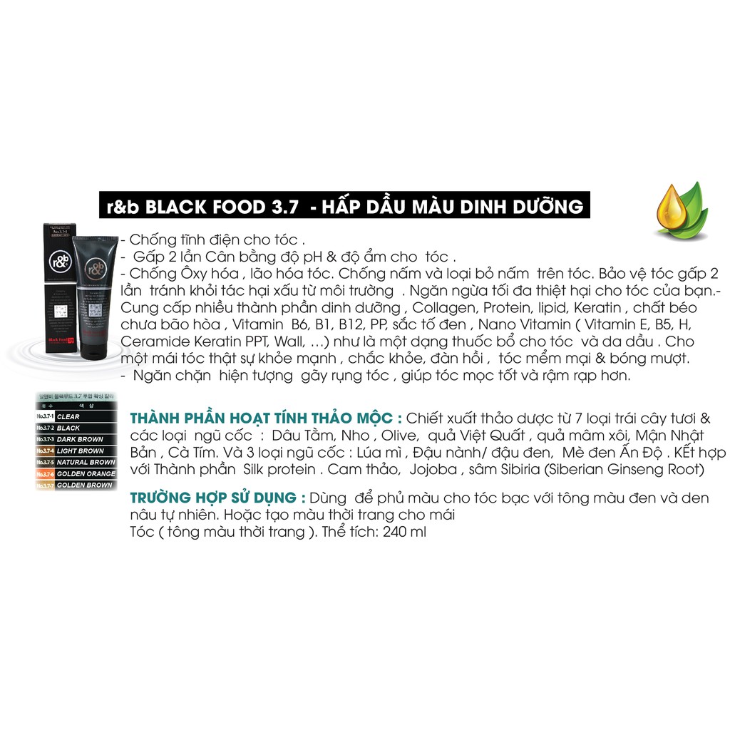 Giới thiệu Hấp dầu màu dinh dưỡng r&b BLACK FOOD 3.7