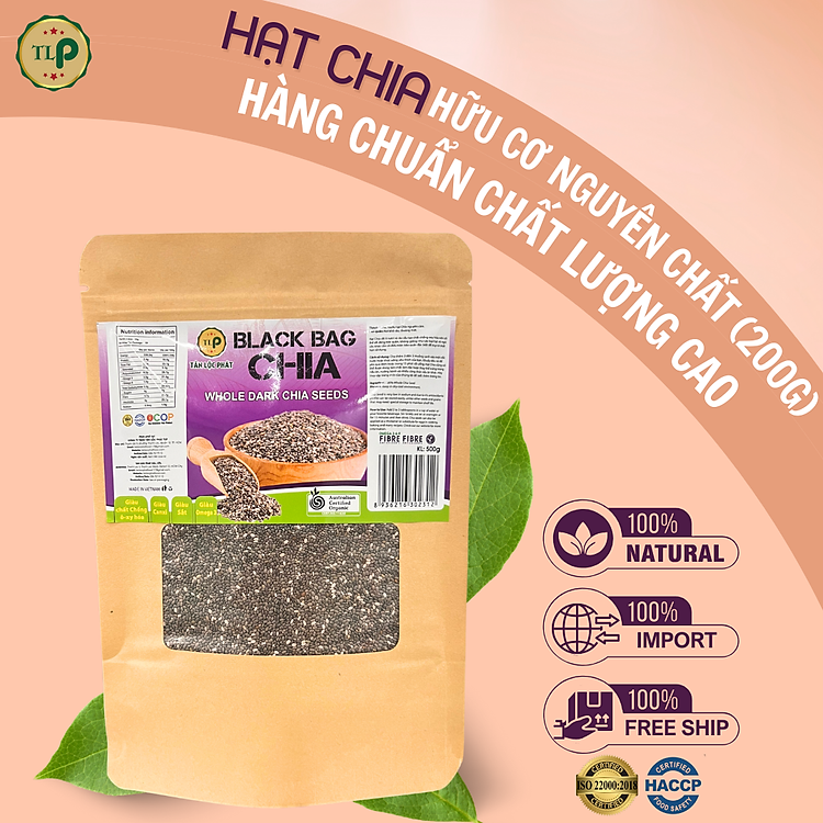 Giới thiệu Hạt Chia Úc TLP.100% Organic Ăn Kiêng Giảm Cân Hạt Chuẩn Sạch Đều Đẹp (Gói 200g)
