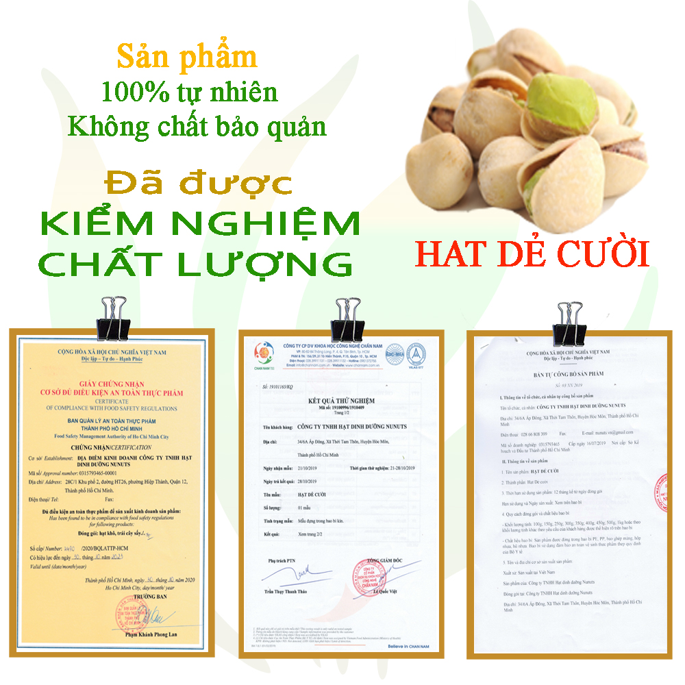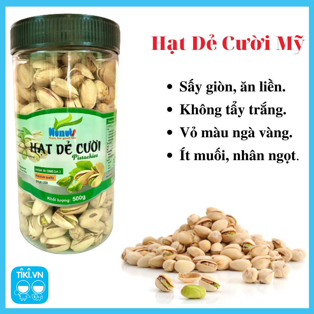 Đặc điểm hạt: hạt dẻ cười Mỹ tại Nunuts hạt to, nở đều, vỏ có màu ngà vàng vàng do nhựa của hạt chứ k phải hàng cũ nha khác, KHÔNG TRẮNG TINH vì không sử dụng chất tẩy trắng. không chất bảo quản. Nhân hạt khi tách ra thì có màu ngà ngà, có chút màu tím, trong cùng là màu xanh trắng rất đẹp mắt.