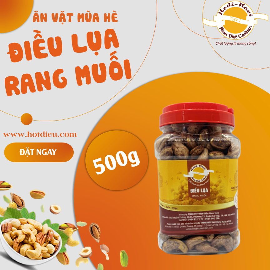 Hạt điềuđược chế biến theo một quy trình khép kín hoàn chỉnh: Nguyên liệu sau khi phơi khô sẽ được tách vỏ để lấy phần nhân bên trong, rồi giữ nguyên phần vỏ lụa. Tiếp đó, phần hạt điều lụa này được rang ở một nhiệt độ phù hợp để tạo ra sản phẩm hạt điều thơm ngon, bổ dưỡng. Thật tuyệt vời khi được nhâm nhi những hạt điều béo ngậy, giòn thơm trong lúc uống ly trà nóng đậm đà. Không chỉ có mùi vị tự nhiên từ hạt điều lụa rang muối, còn kết hợp thêm gia vị để tạo thành sản phẩm hạt điều tỏi ớt thật đậm vị và thơm hương.