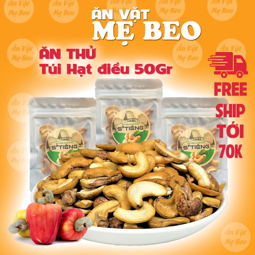 Giới thiệu Hạt điều rang muối Bình Phước loại vở còn vỏ Túi Nhỏ 50gram ăn vặt ngon