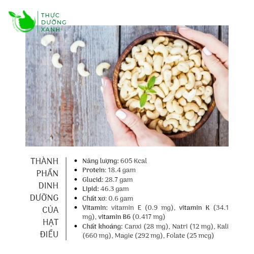 THÔNG TIN SẢN PHẨM ▪️ Xuất xứ: Việt Nam ▪️ Phân phối: Thực Dưỡng Xanh shop ▪️ Địa chỉ: HH6 KĐT Nam An Khánh, Hoài Đức, Hà Nội ▪️ Quy cách: Hút chân không túi 500Gr ▪️ Thành phần: 100% hạt điều tươi sống Bình Phước
