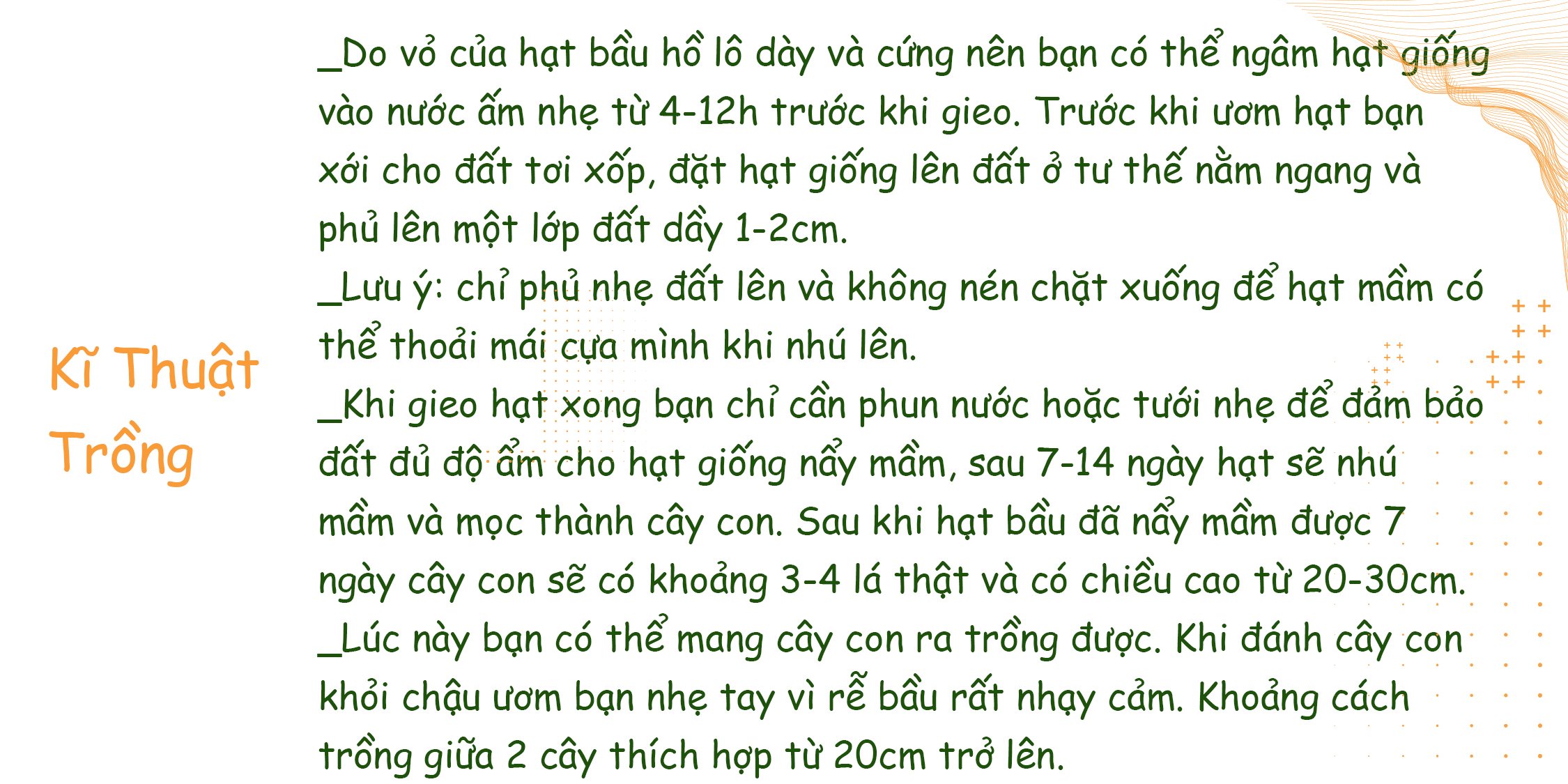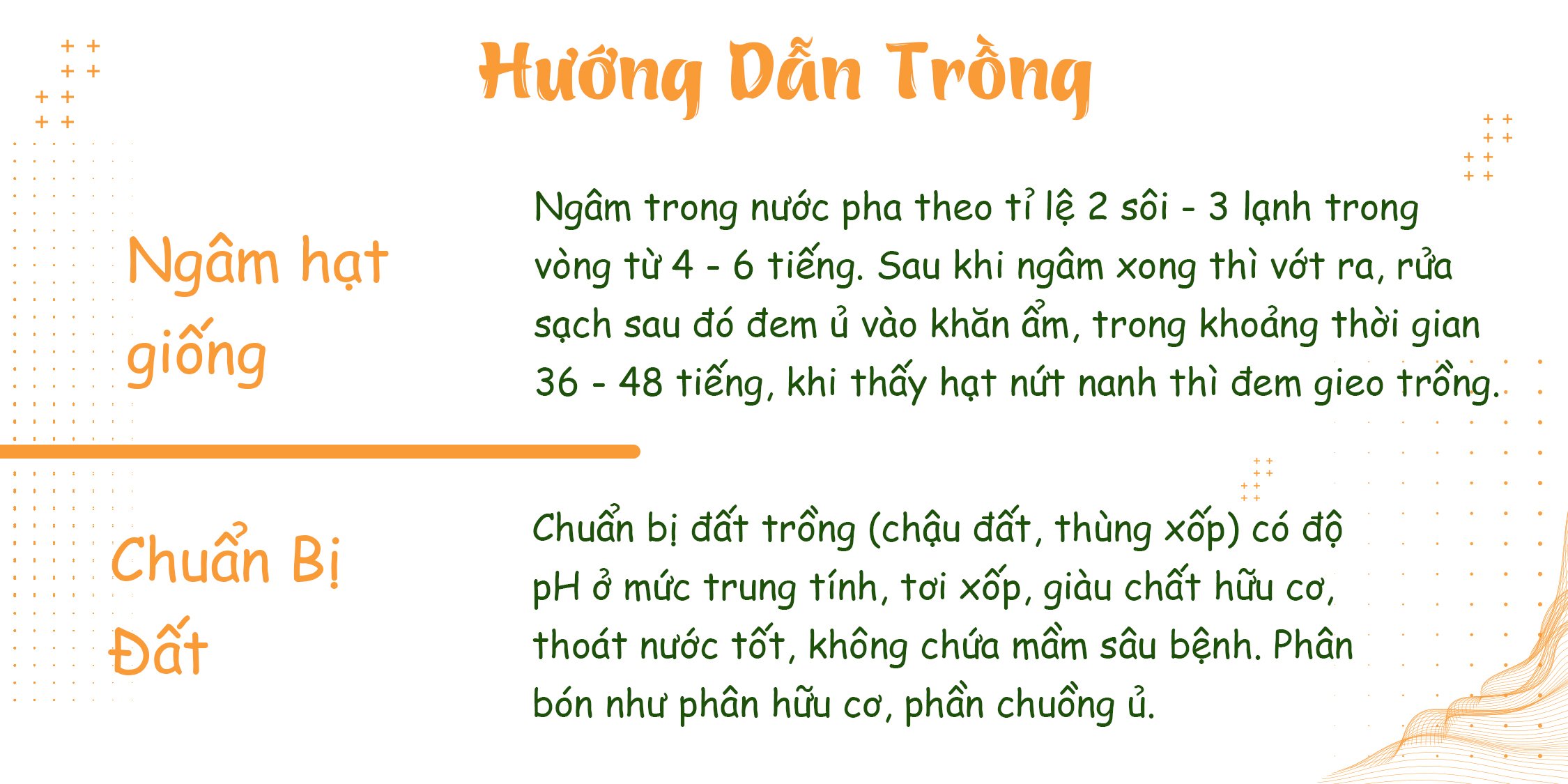 Hướng dẫn sử dụng | Ủ hạt đến khi hạt nứt nanh nhú mầm trắng thì đem gieo |