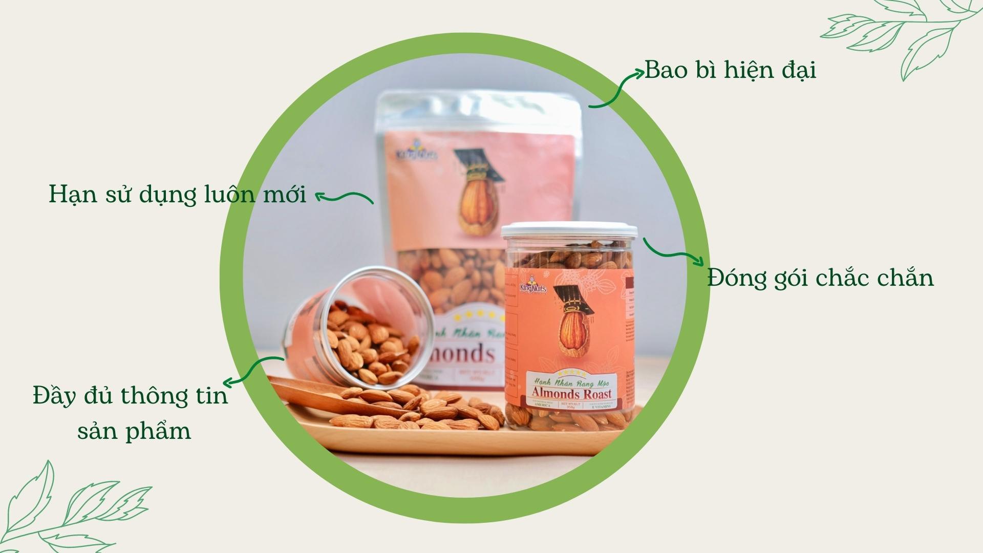 Hạnh nhân rang mộc nguyên liệu được nhập khẩu 100% từ Mỹ, với những thương hiệu nổi tiếng như Treehoause, Rpac,… kích thước hạt 25/27. Với quy trình đóng gói hoàn toàn tự động, nguyên liệu được lựa chọn kĩ càng, loại bỏ các hạt bị sâu, lên dâu, sứt mẻ,… sản phẩm khi đến tay người tiêu dùng được kiểm tra nghiêm ngặt, đảm bảo chất lượng được toàn vẹn và chất lượng tốt nhất. Hạnh nhân nguyên vị được trải qua công đoạn sấy 6 tiếng cho ra những mẻ hạnh nhân thơm và giòn, không mất đi cảm giác tuyệt vời vốn có của chúng.