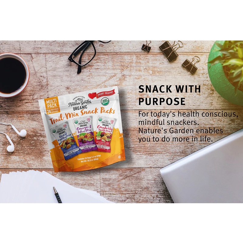 Hạt hỗn hợp Nature's Garden Organic Trail Mix Snack Packs với thành phần hữu cơ được chứng nhận có chất lượng cao nhất.