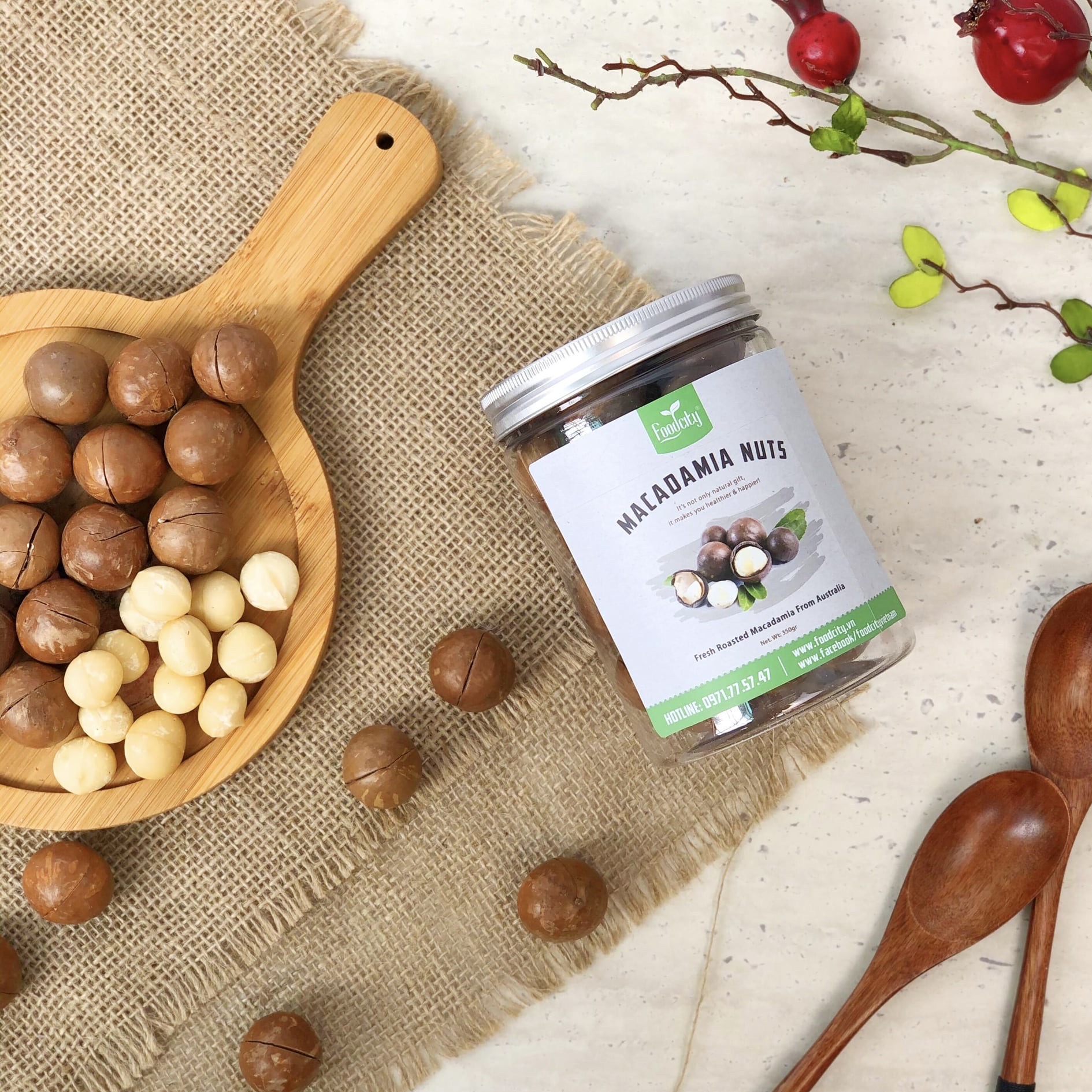 Thành phần | 100% hạt Macca nhập khẩu Úc (tặng kèm dụng cụ tách hạt) |