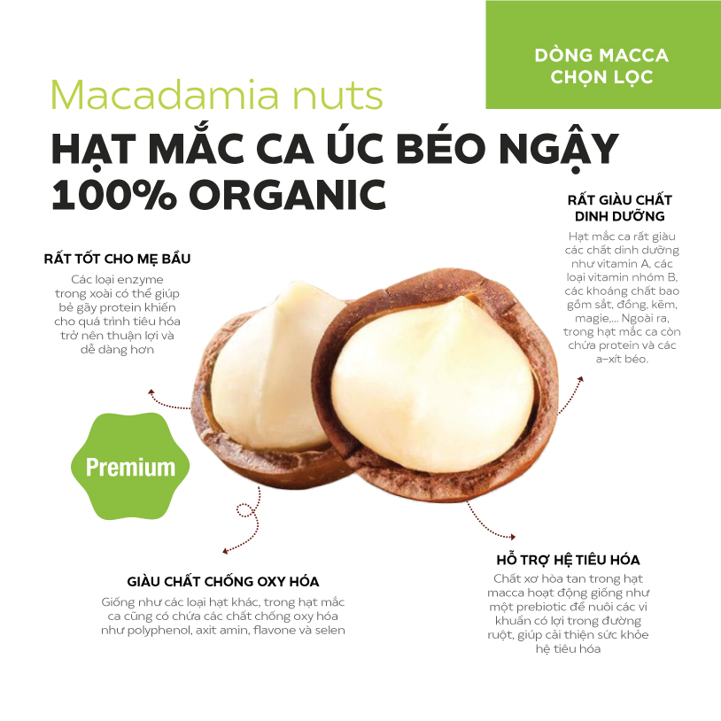(Ngoài hạt macca nứt vỏ shop còn có thêm loại nhân hạt macca đã tách sẵn vỏ, khách hàng tự lựa chọn sản phẩm phù hợp với nhu cầu sử dụng)
