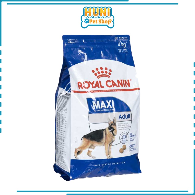 Chăm Sóc Thú Cưng > Thức ăn cho thú cưng > Thức ăn cho chó || Hạt Royal Canin Maxi Adult thức ăn cho chó giống lớn trưởng thành - túi 1kg, 4kg Huni Petshop