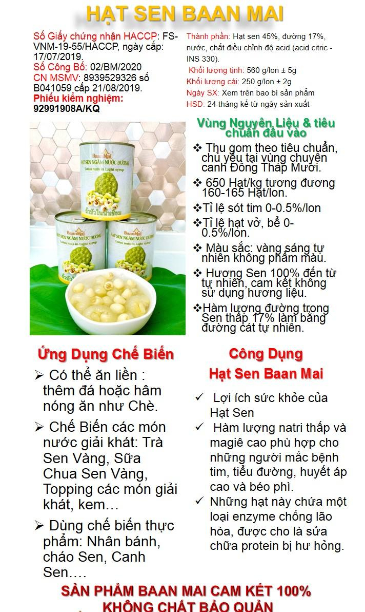 | Thành phần | Hạt sen 45%, đường 17%, nước, chất điều chỉnh độ acid (acid citric - INS 330) |