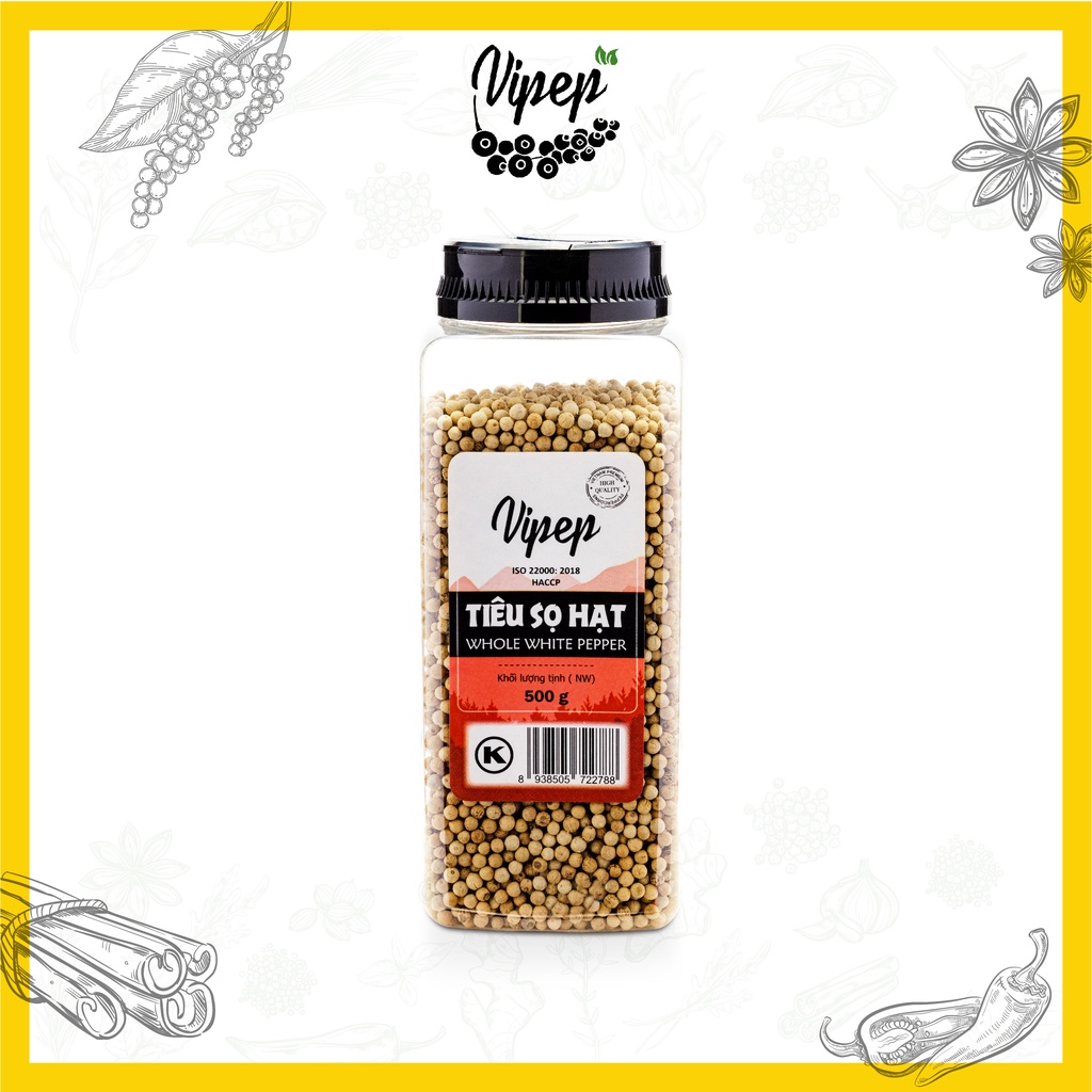 Giới thiệu Hạt tiêu sọ Vipep trắng tự nhiên, trồng từ Đắk Lắk, không chất bảo quản, hũ lớn tiết kiệm (500g)