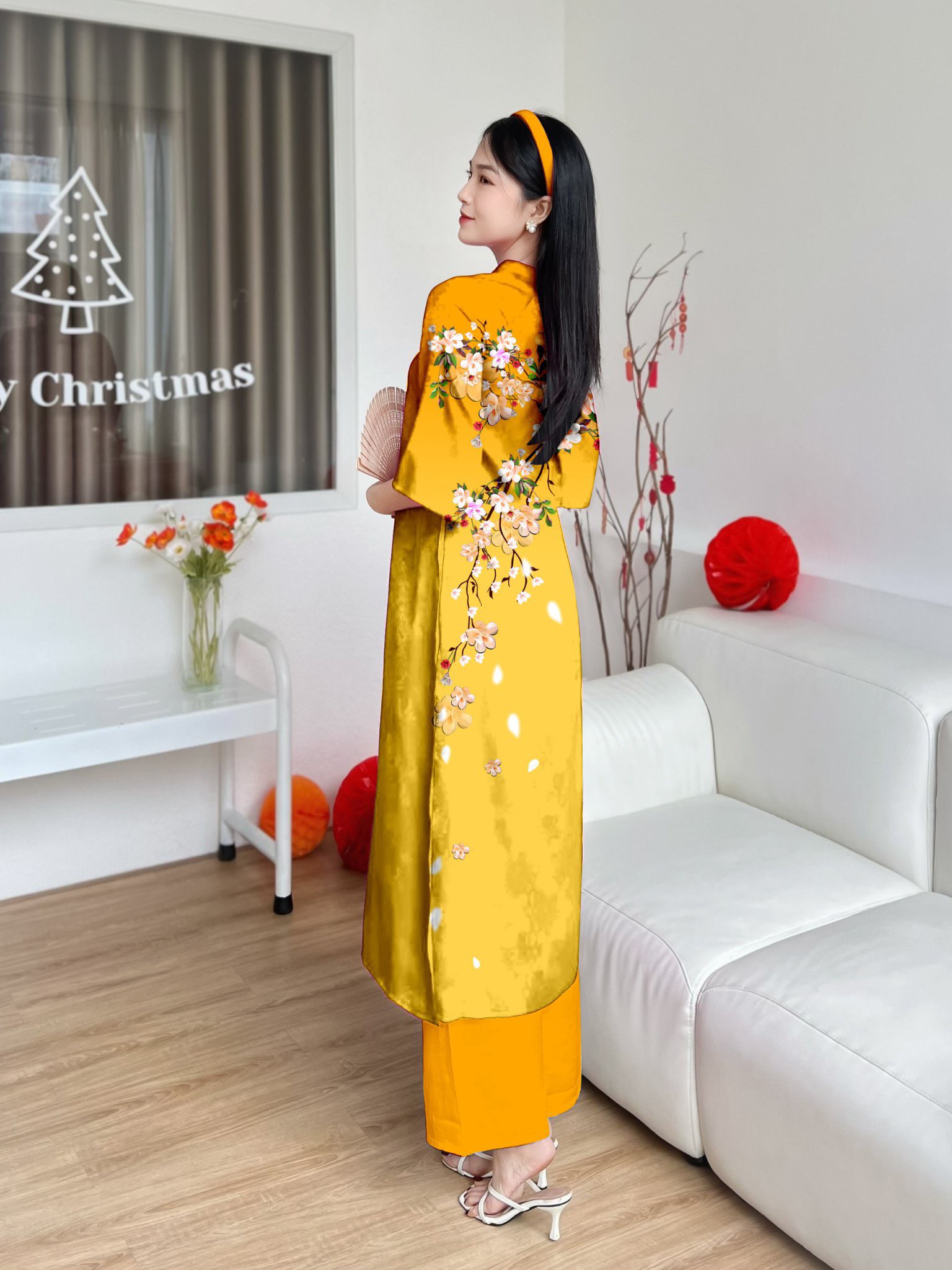 Được sản xuất từ chất liệu gấm lụa cao cấp, chiếc áo dài này được thiết kế theo phong cách cổ Điển kết hợp phong cách hiện đại năng Động với đường may tỉ mỉ và in hoa 3D độc đáo.